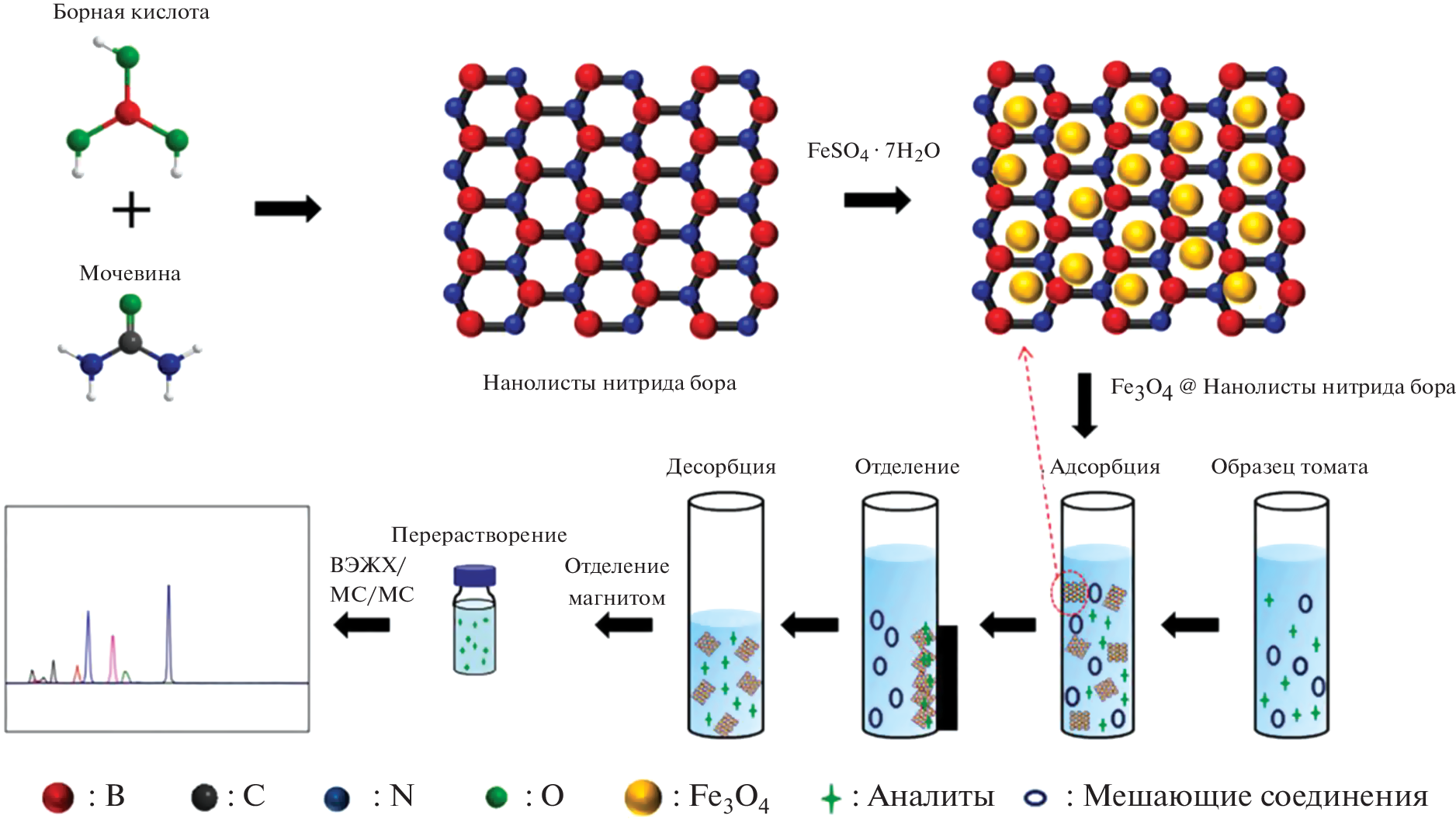 - Li M.-J., Li N., Xu G., Zhao L.X., Chen X., Zhao Y., Zhao R.S. Magnetic boron nitride nanosheets as a novel magnetic solid-phase extraction adsorbent for the determination of plant growth regulators in tomatoes // Food Chem. 2021. V. 348. Article 129103.