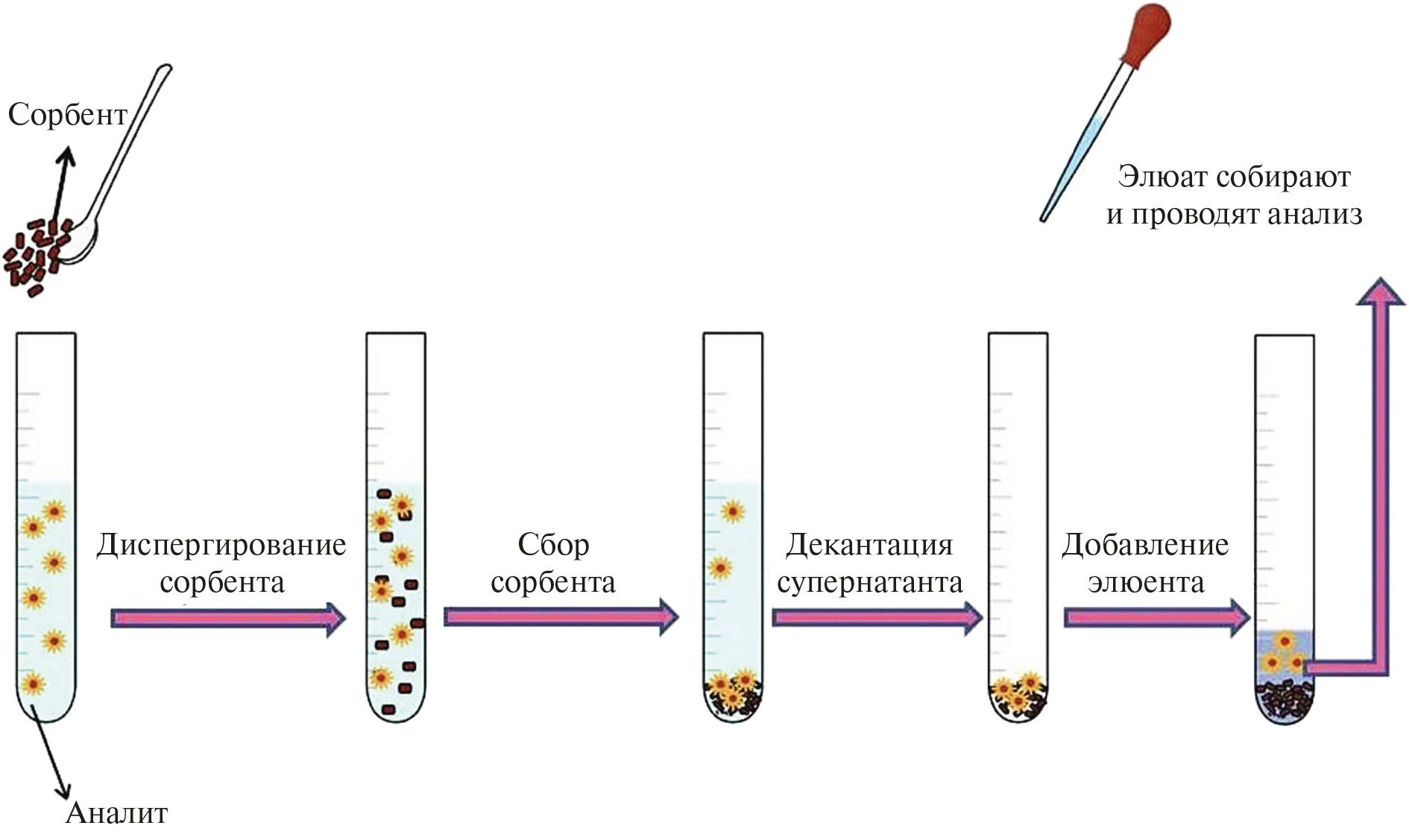 Рис. 1. Схема проведения дисперсионной твердофазной экстракции [47].