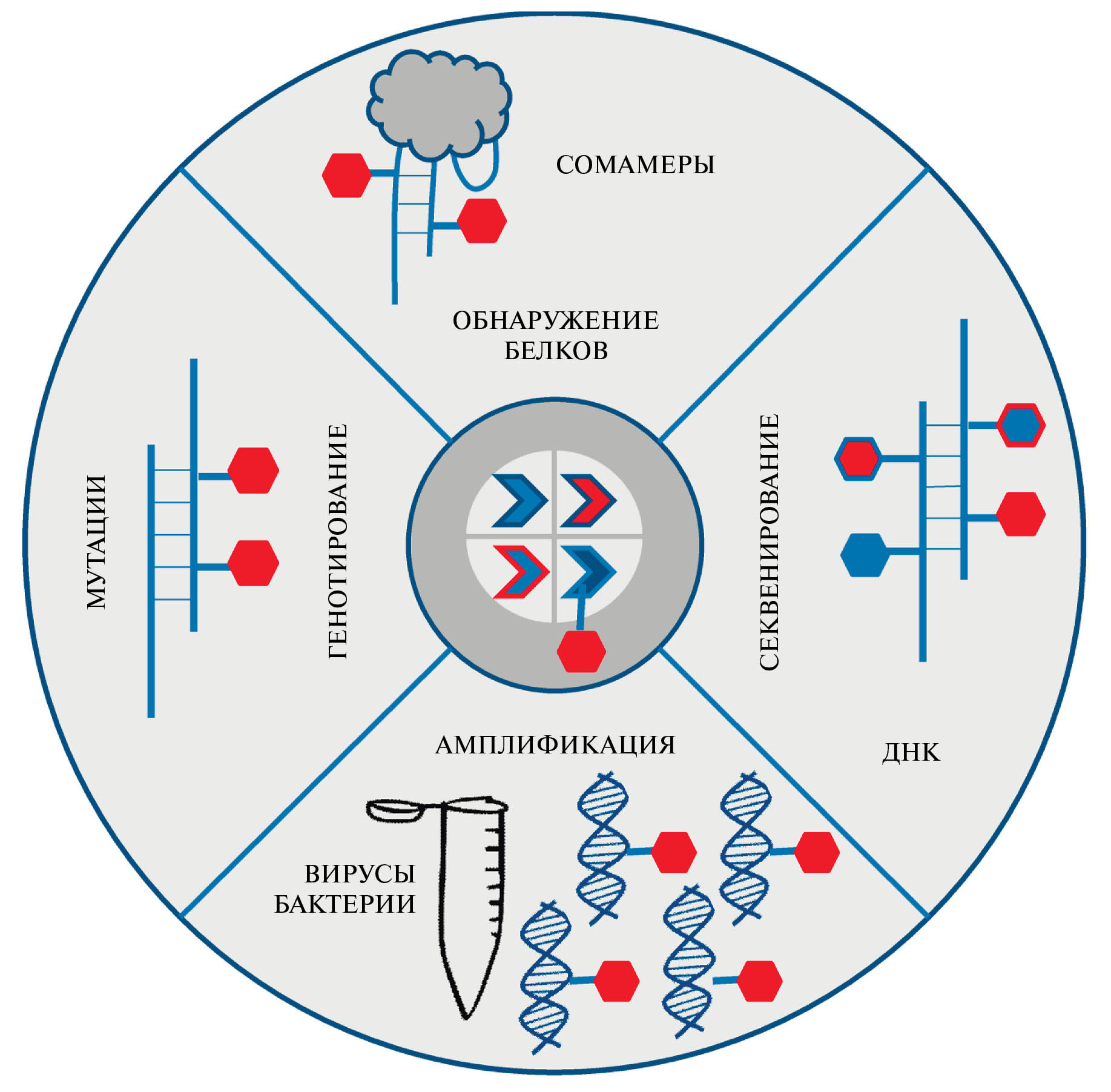 Рис. 3. Основные сферы применения искусственных электроактивных нуклеотидов.