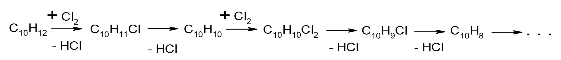 Таблица 3. Исходные хромато-масс-спектрометрические данные для компонентов реакционной смеси свободнорадикального хлорирования тетралина (RI 1147 ± 11)