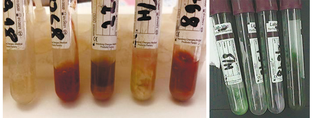 Характеристика биопроб. Отбор проб цервикально-вагинальных выделений и маточного экссудата проводили по методу, описанному в работе [41], с применением стерильных зондов-тампонов и акушерской ложки Панкова. Биопробы после отбора помещали в стерильные пробирки. В обучающей и проверочной выборке участвовало 27 новотельных животных. Каждое животное исследовали не менее трех раз в периоды до, 3, 6, 18 дней после отела.