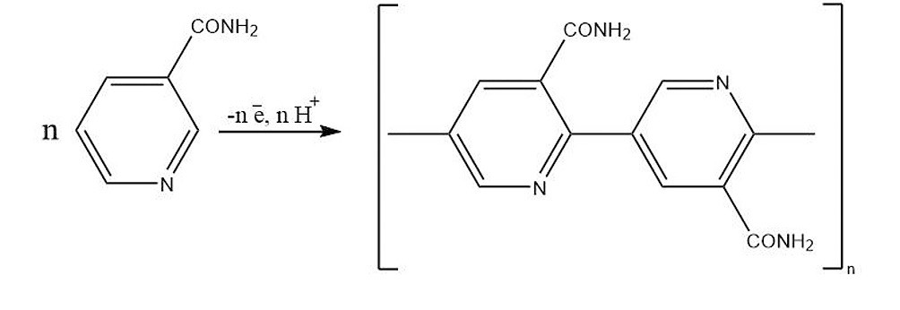 В последние десятилетия широко развивается электрохимический анализ с применением новых материалов для конструирования различных сенсоров. Эти материалы позволяют создавать сенсоры, обладающие высокими селективностью и чувствительностью, способностью к распознаванию органических веществ в биологических жидкостях в присутствии мешающих компонентов. Следует отметить, что мономеры, используемые для синтеза МИП, могут обладать высокой токсичностью и мутагенностью [17], поэтому экологически чистые материалы типа никотинамида (НА), являющегося основным компонентом комплекса витаминов группы В и реакционноспособной частью никотинамидадениндинуклеотида, считают перспективным материалом для получения МИП [18].