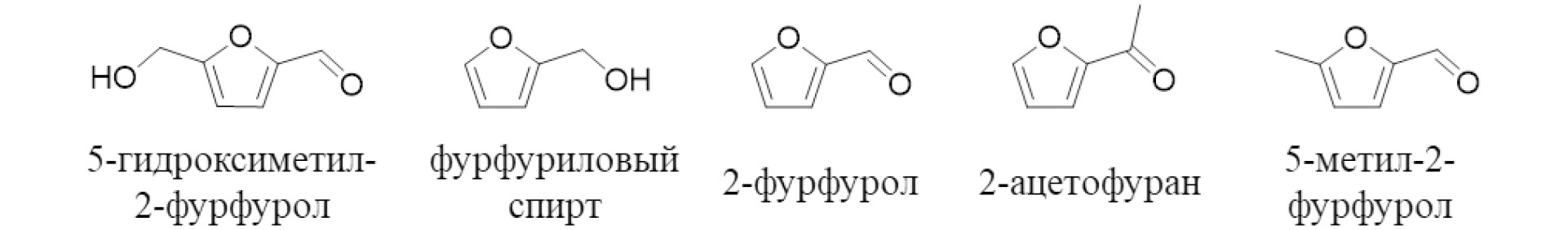 Схема 1. Структурные формулы фурановых производных, образующихся в процессе деградации бумажной изоляции.