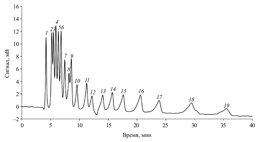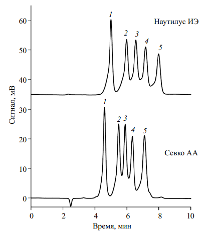 - Ng K.L., Dicinoski G.W., Haddad P.R. Effects of stationary phase cross-linking and ion-exchange capacity on the retention of carboxylic acids in ion-exclusion chromatography using sulfonated resins // Anal. Sci. 2001. V. 17. P. 1117.