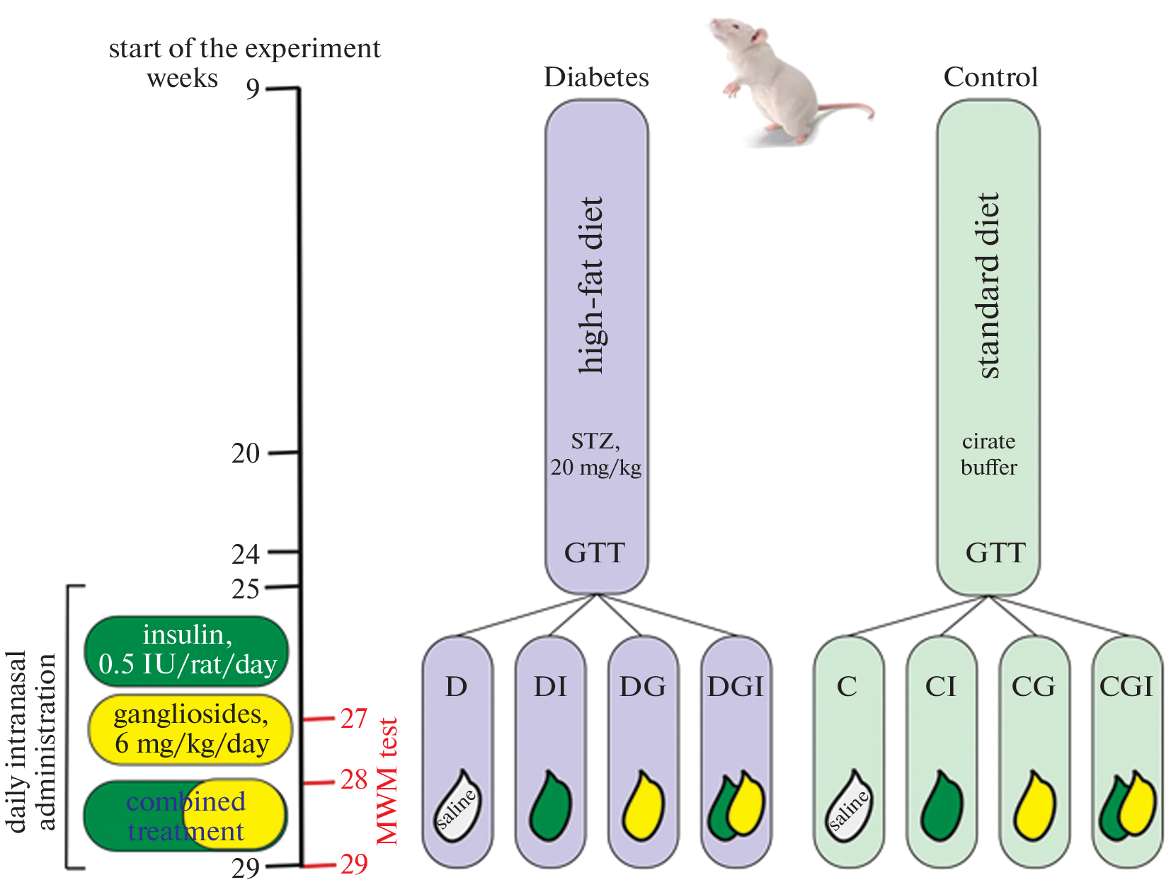 - Sukhov IB, Lebedeva MF, Zakharova IO, Derkach KV, Bayunova LV, Zorina II, Avrova NF, Shpakov AO (2020) Intranasal Administration of Insulin and Gangliosides Improves Spatial Memory in Rats with Neonatal Type 2 Diabetes Mellitus. Bull Exp Biol Med 168: 317–320. https://doi.org/10.1007/s10517-020-04699-8