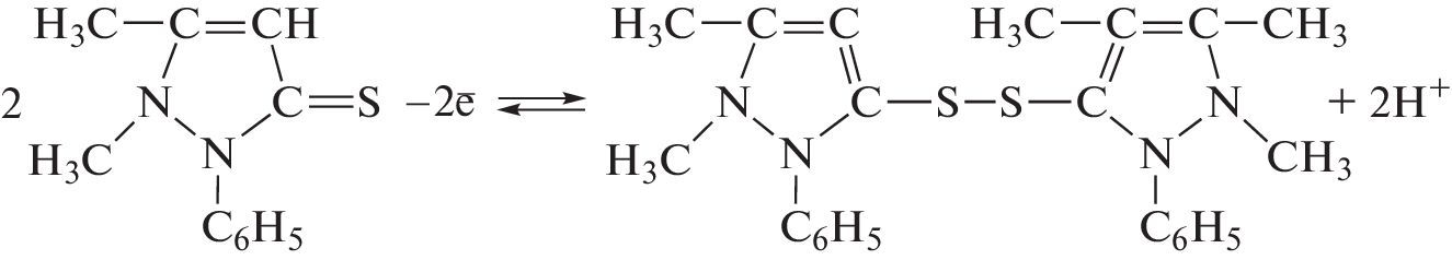 Potentiometry is used to study the formation of Cu(II)–1-phenyl-2,3-dimethylpyrazoline-5-thione (1-P-2,3-DMP-5-T) complex in a mixed solvent. The compositions of the complexes are determined, and their stepwise constants of stability are calculated. It is shown that when Cu(II) reacts with 1-P-2,3-DMP-5-T in a medium of mixed solvent HCl + acetone (10 : 1), quantities ΔH, ΔG, and ΔS have negative values at all stages.