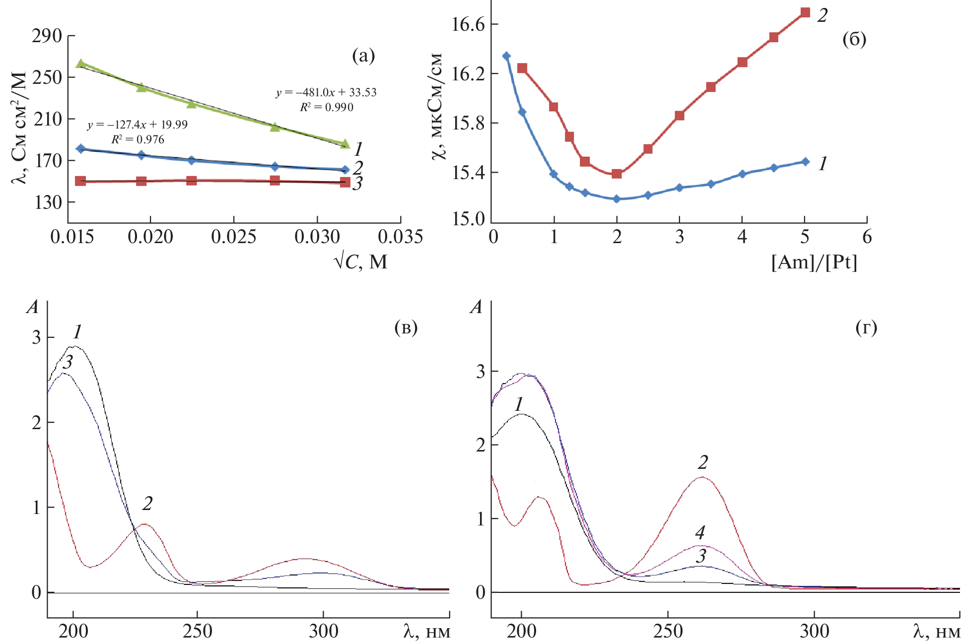 Методами кондуктометрии, спектрофотометрии и ИК-спектроскопии исследовано взаимодействие Pd(II), Pt(II), Pt (IV) и сопутствующих ионов Ni(II), Co(II), Fe(II, III), Cu(II) с 2(4)-аминопиридинами (2(4)-АП) в водных растворах, приближенных к условиям их экстракционного выделения и разделения. Показано, что ионы платиновых металлов образуют устойчивые нейтральные и катионные комплексы как с 2-АП, так и с 4-АП, которые могут быть выделены из водных растворов. Тенденция к образованию катионных комплексов снижается в ряду Pd(II) > Pt(II) > Pt(IV) и 4-АП > > 2-АП. Ионы 3d-элементов, кроме Cu(II), в этих условиях устойчивых комплексов не образуют. Cu(II) образуют комплексы с 2(4)-АП, которые подвержены гидролизу при выделении из водных растворов. Обсуждается специфика 2(4)-АП при взаимодействии с ионами металлов. Предлагается использовать аналоги 2(4)-АП с длинным углеводородным радикалом для экстракционного концентрирования платиновых металлов из сложных по составу растворов гидрометаллургии.