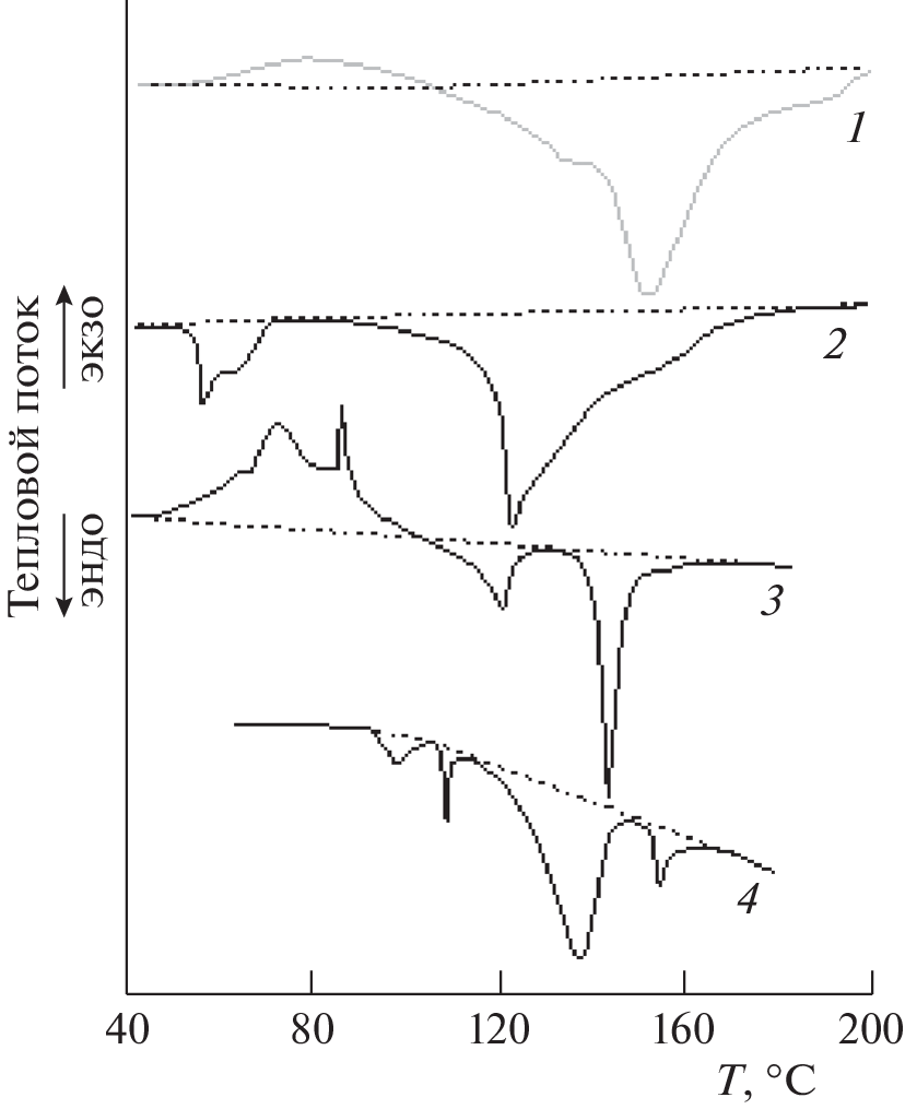 Mixtures of polypropylene (10 wt %) with anthracene, phthalocyanine, indigo, adamantane, congo red, spiropyran, safranin, methyl orange, bromocresol purple, phenolphthalein, fluorescein, phenol red, thymol blue, aspartic acid, cyanuric acid, thymolphthalein, and rhodamine were subjected to plastic deformation at a pressure of 1 GPa on an anvil-type high-pressure apparatus. It was found by DSC that the thermograms of heating of the deformed mixtures in the temperature range below Tm of the polymer contain endothermic peaks of melting of small polymer crystallites with enthalpies reaching 220–240 J/g in some samples, as well as exothermic peaks of cold crystallization with enthalpies reaching 430–470 J/g. The melting was described by bi- and trimodal peaks, whose total enthalpy reached 2200–2400 J/g in some mixtures. The polymer crystallization in the deformed mixtures was described by single exothermic peaks, whose enthalpies differed little from the crystallization enthalpy of the starting polypropylene. An increase in the enthalpies of thermal processes in the deformed mixtures was attributed to the appearance of double electric layers at interfaces between the mixed phases.