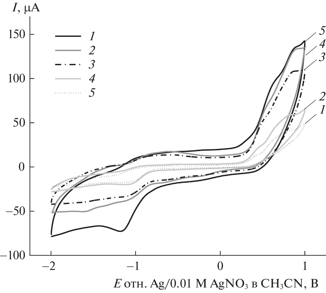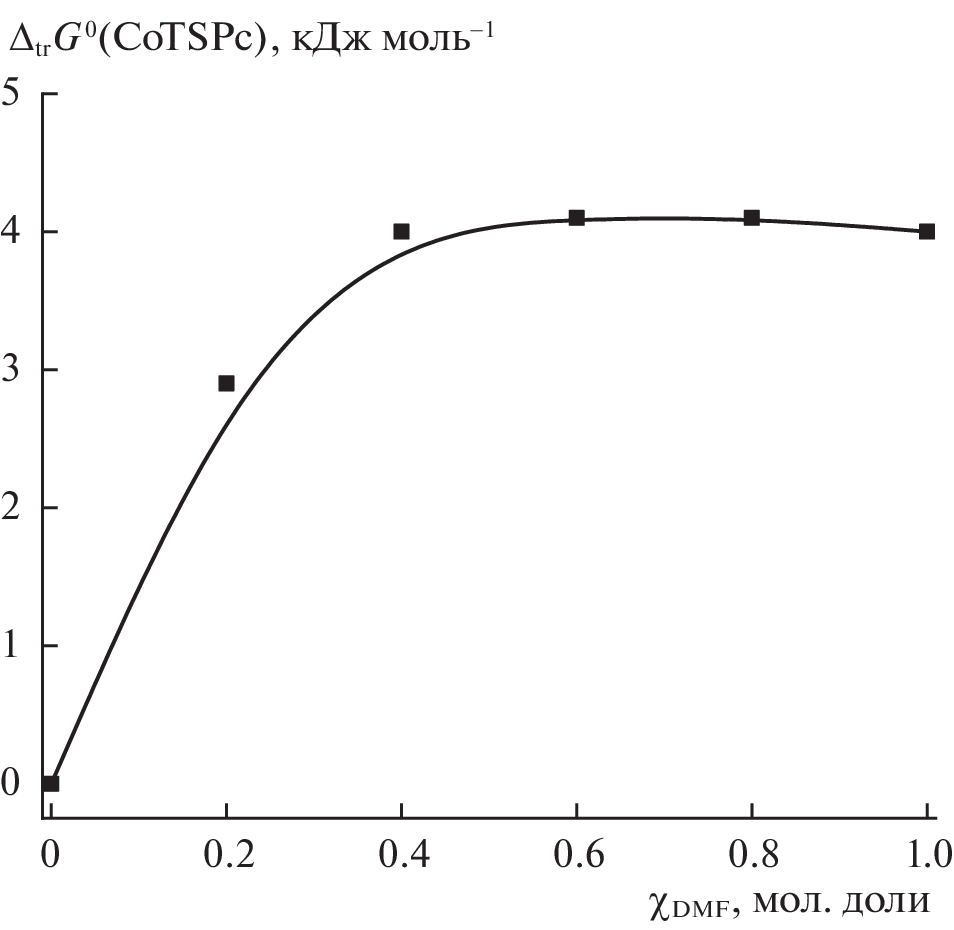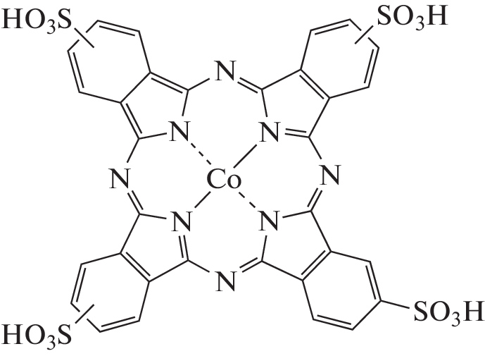 The effect of the composition and properties of the mixed water–N,N-dimethylformamide solvent (χDMF = 0.0–1.0 mole fraction) on changes in the solvated state of cobalt 3(4),10(11),17(18),24(25)-tetrasulfophthalocyaninate (CoTSPc) was studied. The region of electrochemical stability of the CoTSPc–DMF electrolyte system at 25.0°C was determined. The study was performed by the interphase distribution method, electronic absorption spectroscopy, and cyclic voltammetry.
