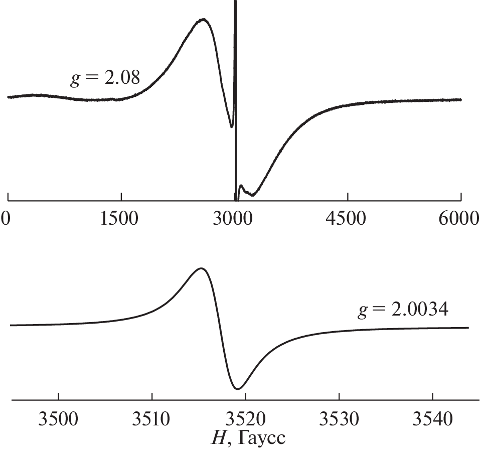 A nitrogen-doped carbon material (NDCM) is synthesized by grinding a graphene oxide–melamine mixture in a planetary mill in which the balls and the body are both made of zirconium dioxide. In addition to a narrow signal at g = 2.0034, the EPR spectrum of the NDCM exhibits a broad signal at g = 2.08. Studies with a magnetometer show the NDCM is presumably a ferromagnetic material with a saturation magnetization at room temperature of approximately 0.02 emu/g and a coercive force of 100 Oe.