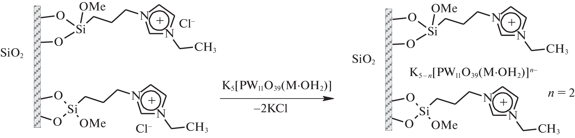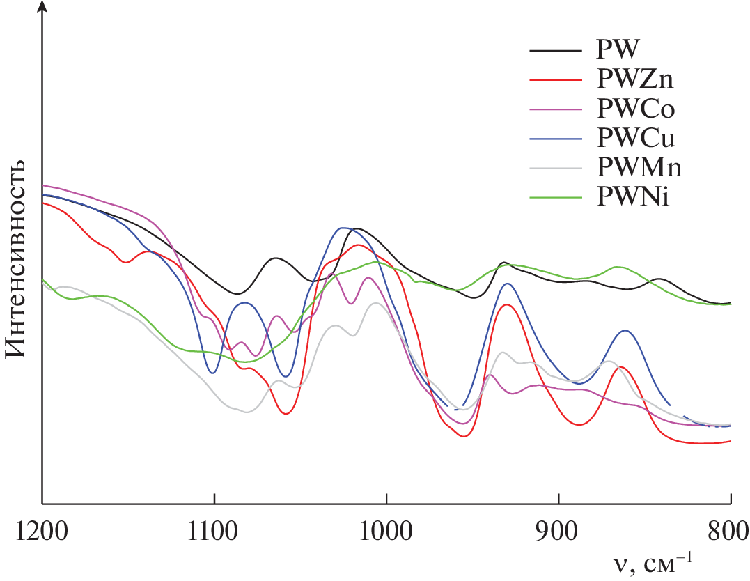 A set of silica gel-immobilized compounds is synthesized that consists of ethylimidazole cations and anions of phosphotungstic acid (lacunar (PW11) or mixed (PW11M), where M = Zn, Ni, Cu, Co, Mn). The composition and textural characteristics of the compounds are determined by physicochemical means (IR spectroscopy, XPS, SEM/EDX, adsorption). The synthesized heterogeneous composites are active in the oxidation of sulfur- and nitrogen-containing components of petroleum feedstocks with hydrogen peroxide. A comparative analysis is performed of the samples’ catalytic properties in the oxidation of both individual substrates (thiophene, dibenzothiophene, methyl phenyl sulfide, pyridine) and their mixtures.