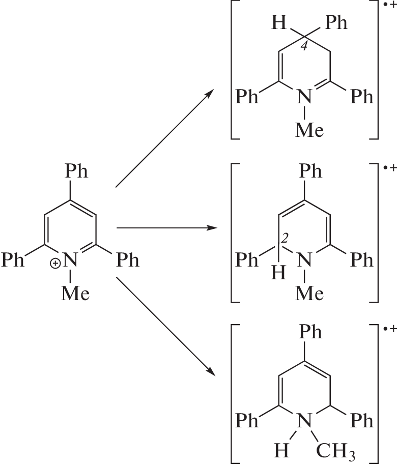 DFT is used to study thermodynamic aspects of the mechanism of the electrocatalytic formation of molecular hydrogen using N-methyl-2,4,6-triphenylpyridinyl cations. A structural and energetic analysis of the corresponding intermediate products is performed. It is shown that electrocatalytic formation proceeds through a stage of forming C2-protonated radical cations and their subsequent reduction.