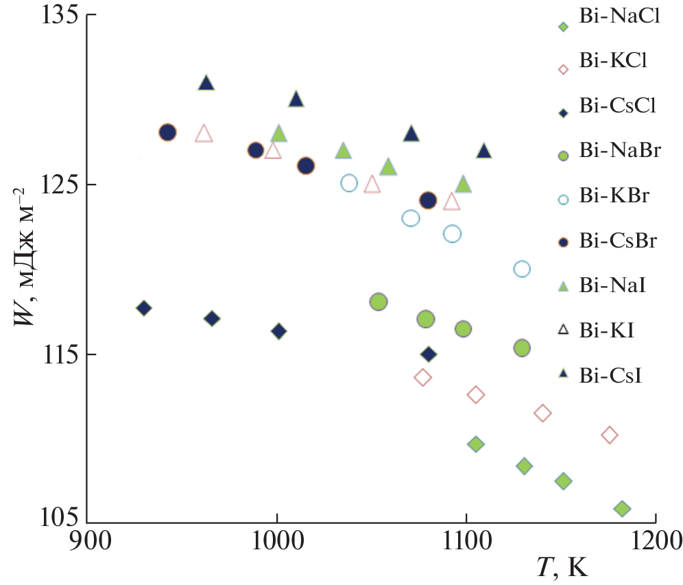 Адгезия и фазовый переход смачивания в системе жидкий висмут–расплавленный галогенид щелочного металла