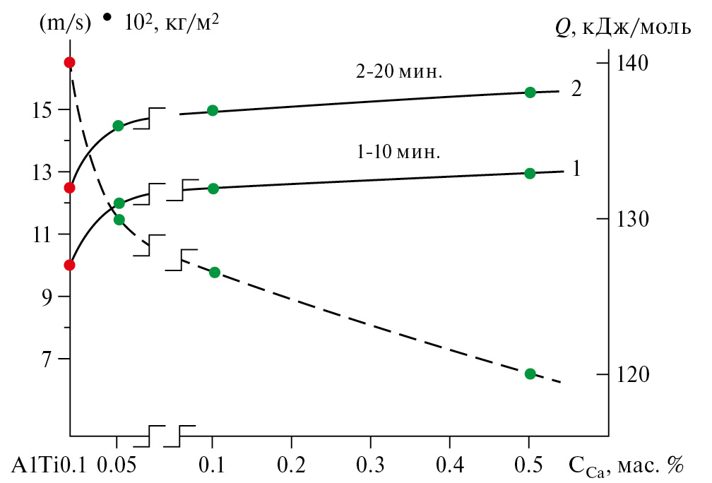 В литературе известно использование щелочноземельных металлов в качестве модификатора алюминиево-кремниевых сплавов [17, 18]. Подчеркивается их положительное действие на структуру и механические свойства алюминиевых сплавов. Однако нет сведений о влиянии кальция на физико-химические свойства алюминиево-титановых сплавов.