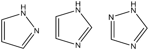 Рис. 1. Структурные формулы 1Н-пиразола, 1Н-имидазола и 1Н-1,2,4-триазола.