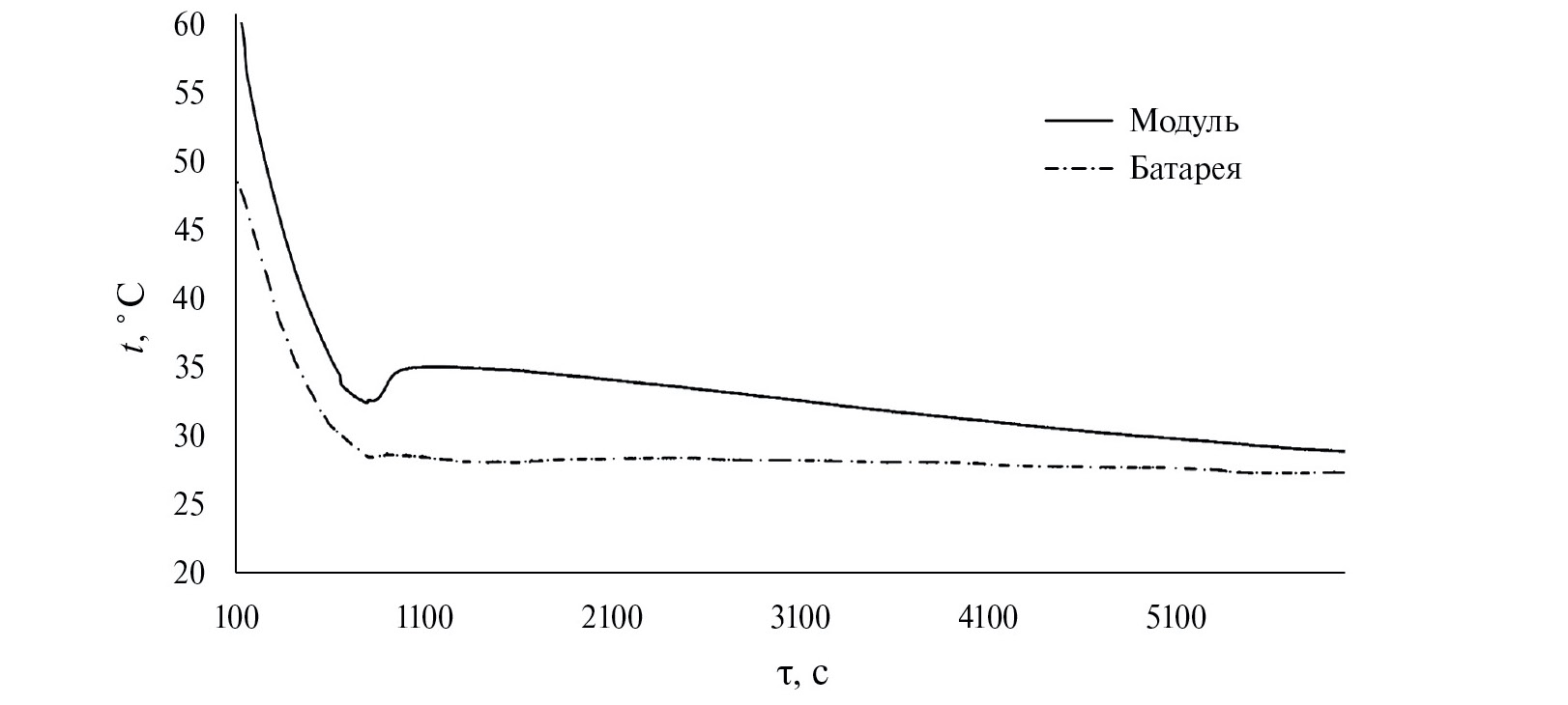 Температура кристаллизации у состава 6 (93%Zn(NO3)2∙6H2O + 7% Co(NO3)2∙6H2O) + 5% КМЦ + 1% EG стабильно показывало значение 30–30.2 °C, а у состава 5 (95% Zn(NO3)2∙6H2O + 5% Co(NO3)2∙6H2O) + 1% КМЦ + 1% EG) было высокое время аккумуразрядки тепла τ, достигающее 166 мин. Тем не менее самыми оптимальными ТАМ, в которых удалось одновременно стабилизировать время разрядки тепла и температуру кристаллизации, стали состав 8: (95% Zn(NO3)2∙6H2O + 5% Co(NO3)2∙6H2O) + 1% КМЦ + 1% EGгидр и состав 10: Zn(NO3)2·6H2O + 1.5%ZnO + 1% EGгидр + 1%КМЦ.