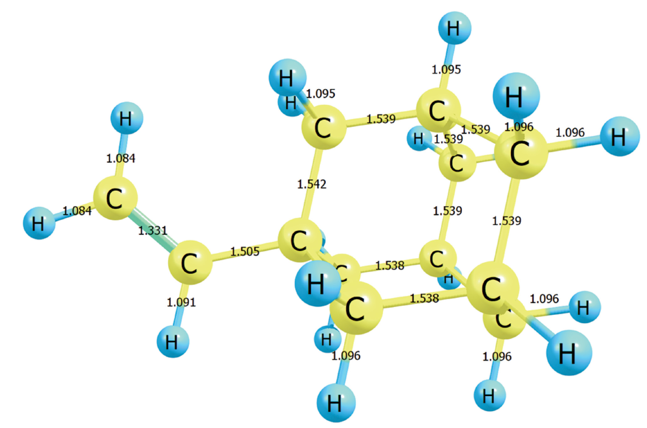 Рис. 1. Геометрическая структура 1-виниладамантана. Расстояния указаны в ангстремах (Å).