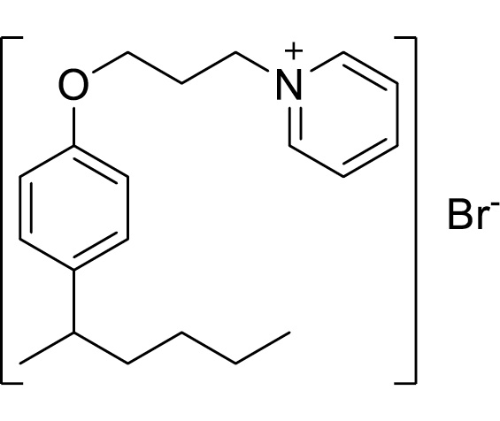 Соединение I было получено конденсацией 4-изогексилфенола с дибромпропаном с последующей кватернизацией продукта конденсации пиридином (выход 95.0%) Тпл. = 235 °С.