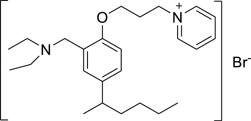 Использованные в работе 1-(4-изогексилфенокси-)-3-пропилпиридиний- (I) и 1-(4-изогексилфенокси-2-диэтиламинометил)-3-пропилпиридиний бромиды (II) нижеследующих структур: