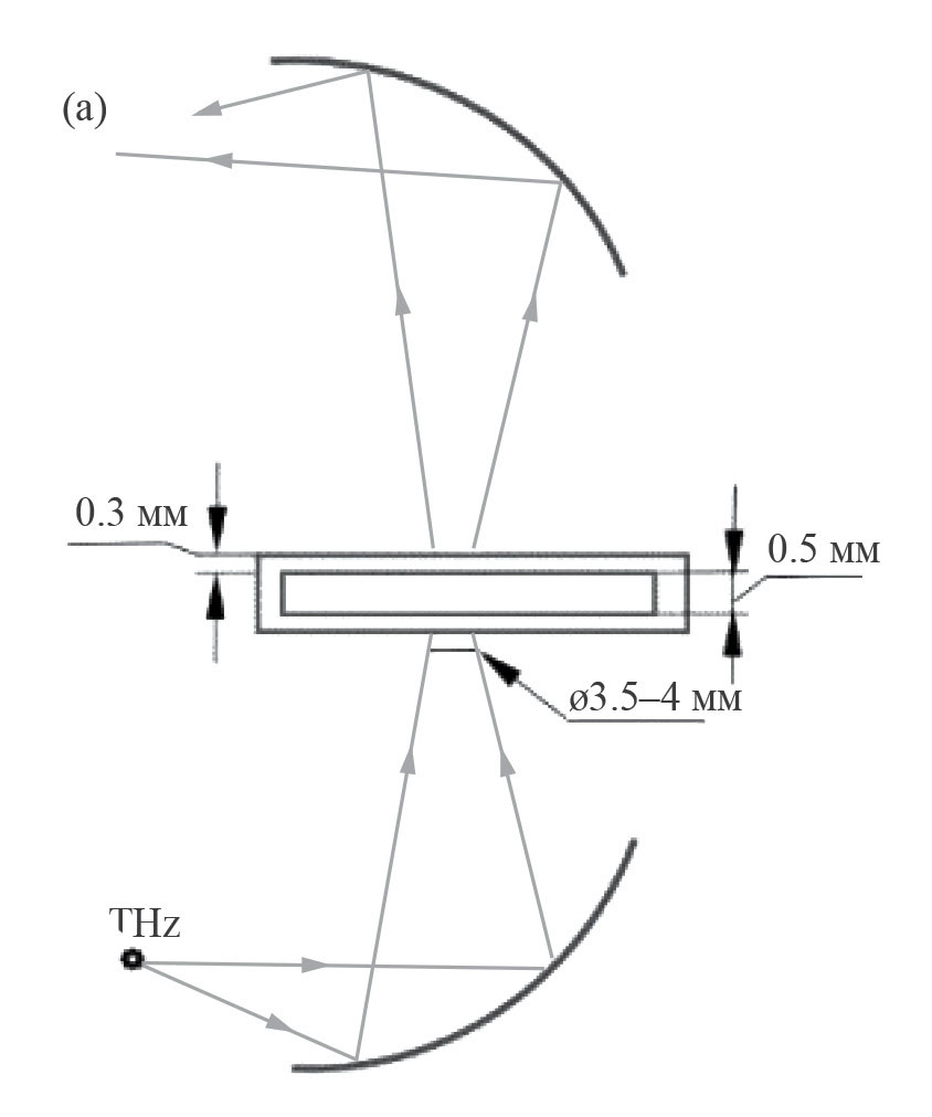 Методология проведения эксперимента заключалась в прохождении сигнала через кювету, заполненную исследуемым образцом. Схема эксперимента представлена на рис. 1. Для работы использовали специальные кюветы, напечатанные на 3D-принтере Designer X PRO (PICASO 3D, Россия) из пластика Watson (BestFilament, Россия) (стирол бутадиен сополимер – прочный, пластичный и термостойкий пластик) [27, 28]. Выбор материала для печати обусловлен его достаточной прозрачностью в ТГц области спектра [27]. Каждый раз, перед регистрацией терагерцового спектра жидкости, измеряли пустую ячейку, а затем заполняли жидким образцом, не меняя положения ячейки.