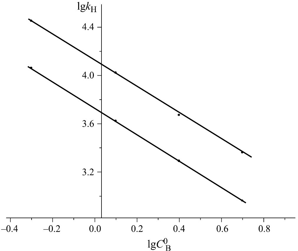 имеет первый порядок по NH-кислоте (рис. 4) и близкий к единице – по основанию (рис. 5), а кинетическое уравнение имеет вид:
