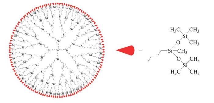 Рис. 1. Молекулярная структура карбосиланового дендримера шестой генерации с концевыми триметилсилилсилоксановыми группами G6[OSi(СH3)3]256.
