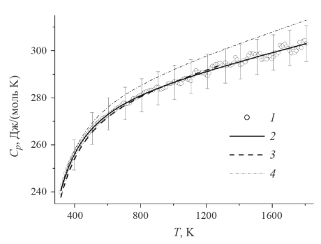Сглаженные значения теплоемкости (Дж/(моль K)) (рис. 5, 2) практически совпадают с опубликованной ранее [16] зависимостью (рис. 5, 3)