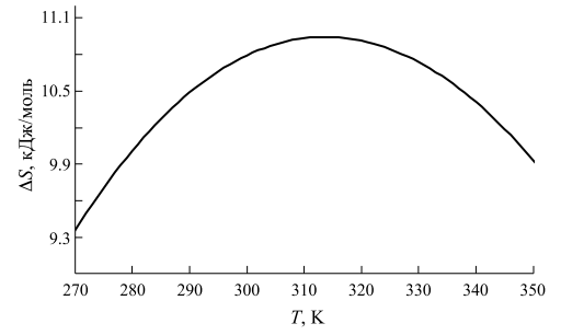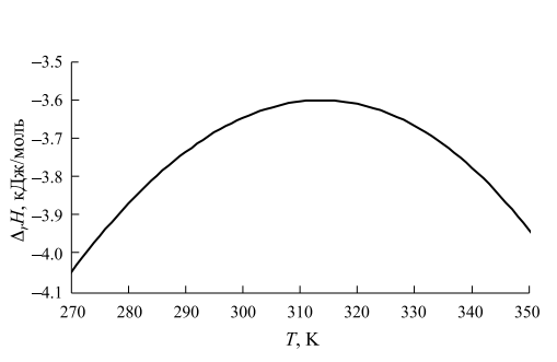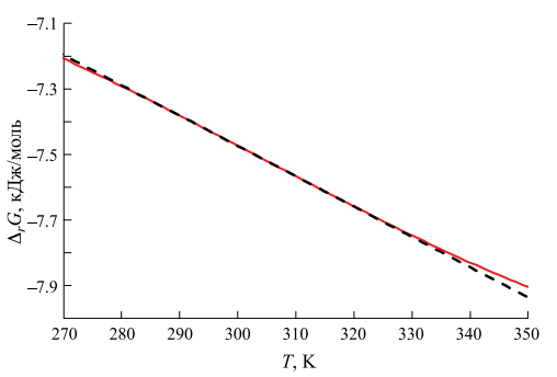Ранее мы получили экспериментальные данные о тепловых эффектах реакции этерификации в этих системах при 313.13 K [22, 23]. Сравнение этих величин с литературными данными для других температур (табл. 1), на первый взгляд, приводит к противоречивому заключению: температурные изменения DrHT, для двух эфиров носят противоположный характер. Однако, эти изменения ненамного превышают обычные экспериментальные погрешности определения энтальпии реакции, ~0.3 кДж/моль [22]. Кроме того, отметим, что некоторые данные получены не вполне прямым способом. В частности, в работе 1958 года [25], выполненной в известной термохимической группе проф. Wadsö Лундского университета, исследовались процессы гидролиза эфиров: как известно скорость этой реакции мала в сравнении со скоростью этерификации, что также может приводить к существенным погрешностям.