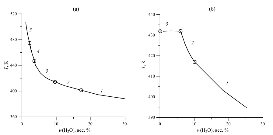 Температуры кипения насыщенных растворов при удалении воды из системы