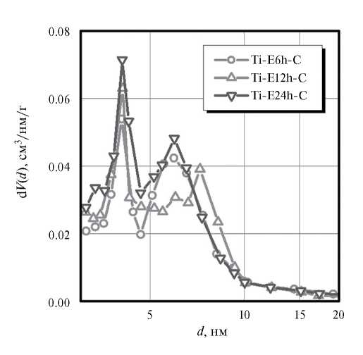 Рис. 2. Распределение пор по размерам в нанокомпозитах Ti-ENh-C.