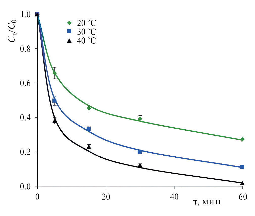 Влияние температуры на окислительную деструкцию цефтриаксона в комбинированной системе {UV–Vis/Fe₂⁺/S₂O₈²⁻}