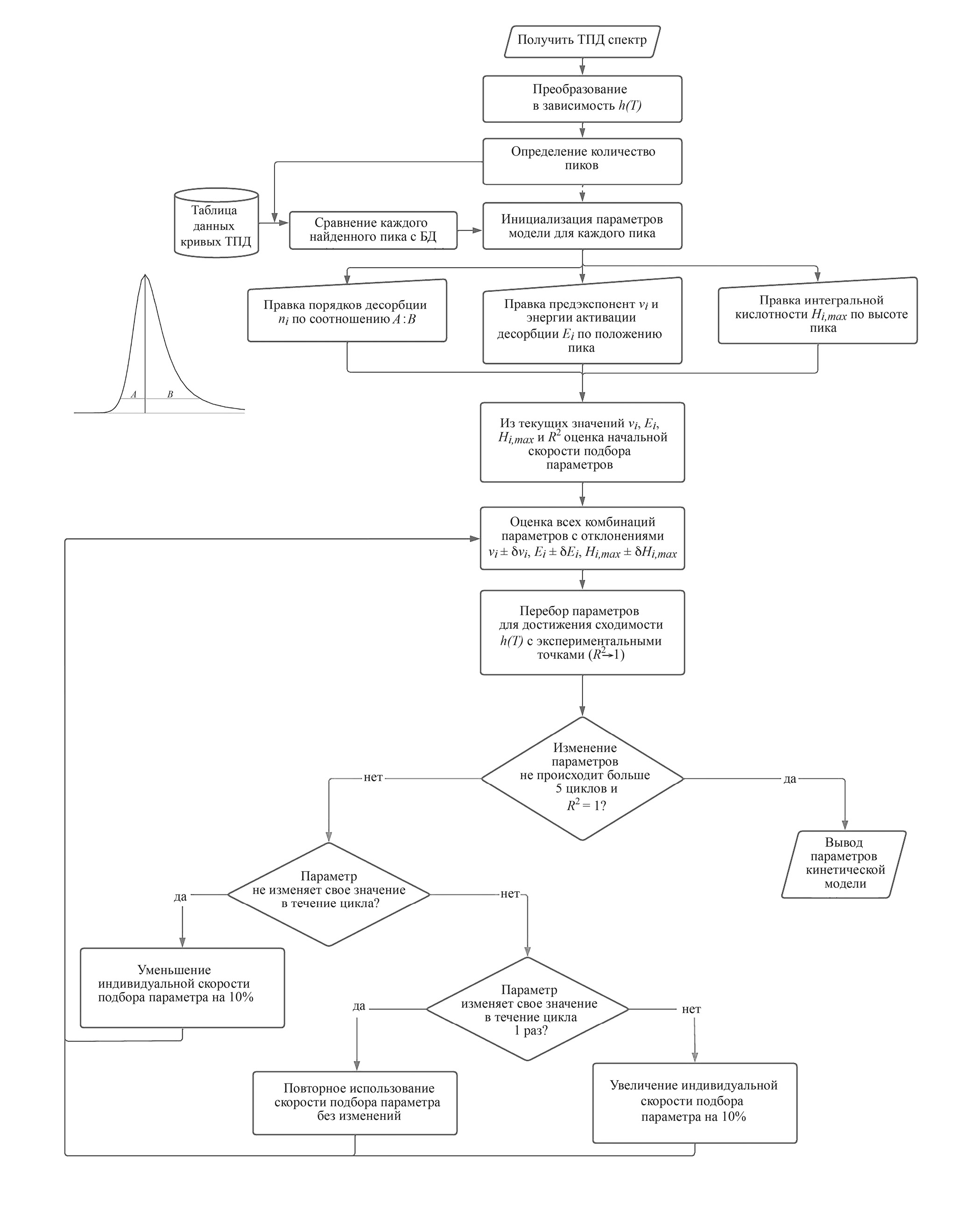 Рис. 7. Блок-схема алгоритма подбора параметров кинетической модели ТПД NH3.