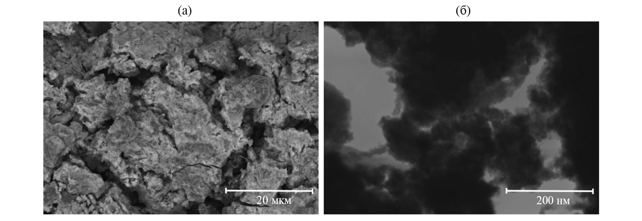 Рис. 3. СЭМ- (а) и STEM- (б) изображения материала PET-UiO-66.