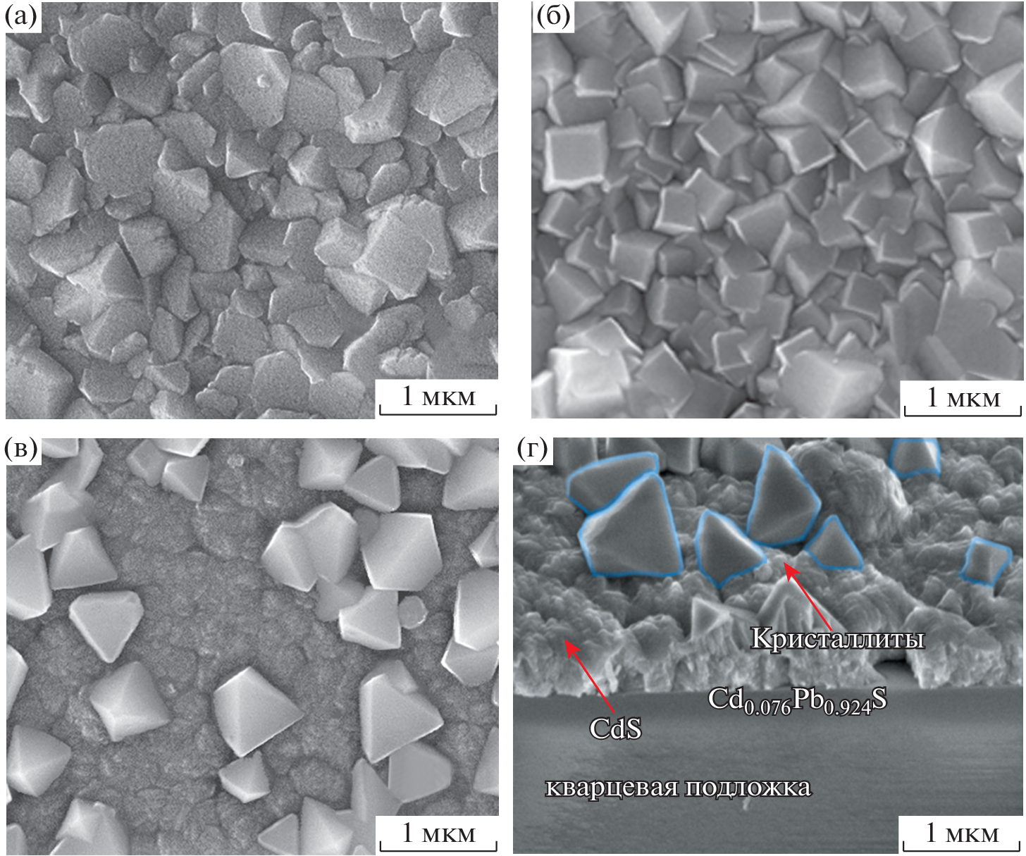 ) were prepared by chemical deposition and characterized by X-ray diffraction, scanning electron microscopy, EDX elemental analysis, and Raman spectroscopy. Once the cadmium sulfate concentration in the batch reached some critical value (0.1 mol/L), the films formed involved two autonomous phases: CdxPb1 – xS substitutional solid solutions and hexagonal cadmium sulfide CdyS of structure В4 (space group P63mc). The method and its parameters as proposed are efficient for manufacturing heterostructures in the CdS–PbS system in one-pot deposition.