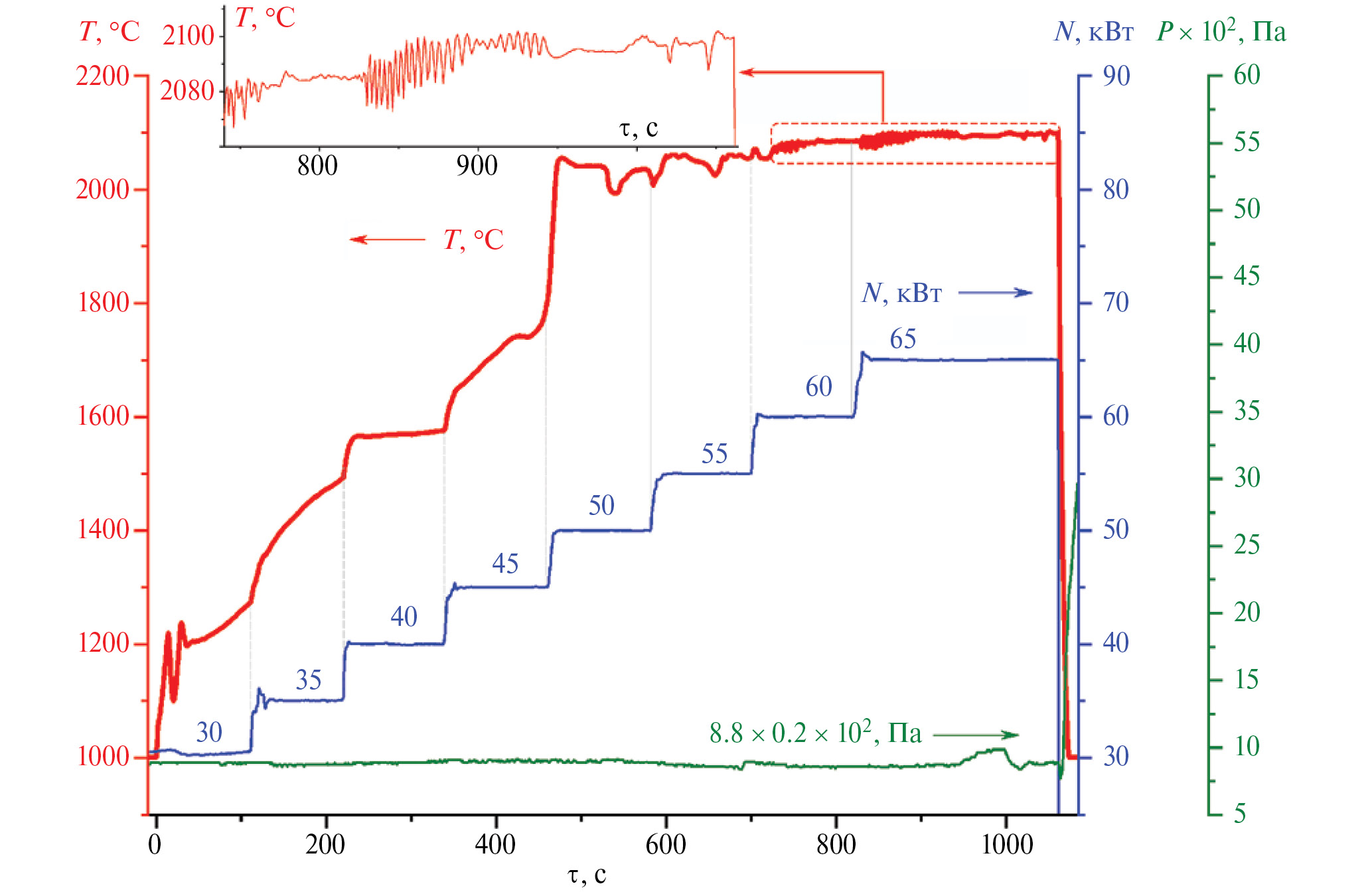 После завершения нагрева образец выдерживали в токе азота до его охлаждения до температуры <900–1000°C с целью минимизации процесса его постокисления.