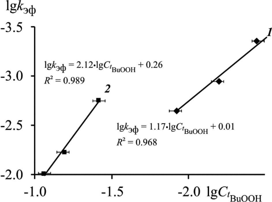 lgkэф = lgkv + nlg[tBuOOH] (2)