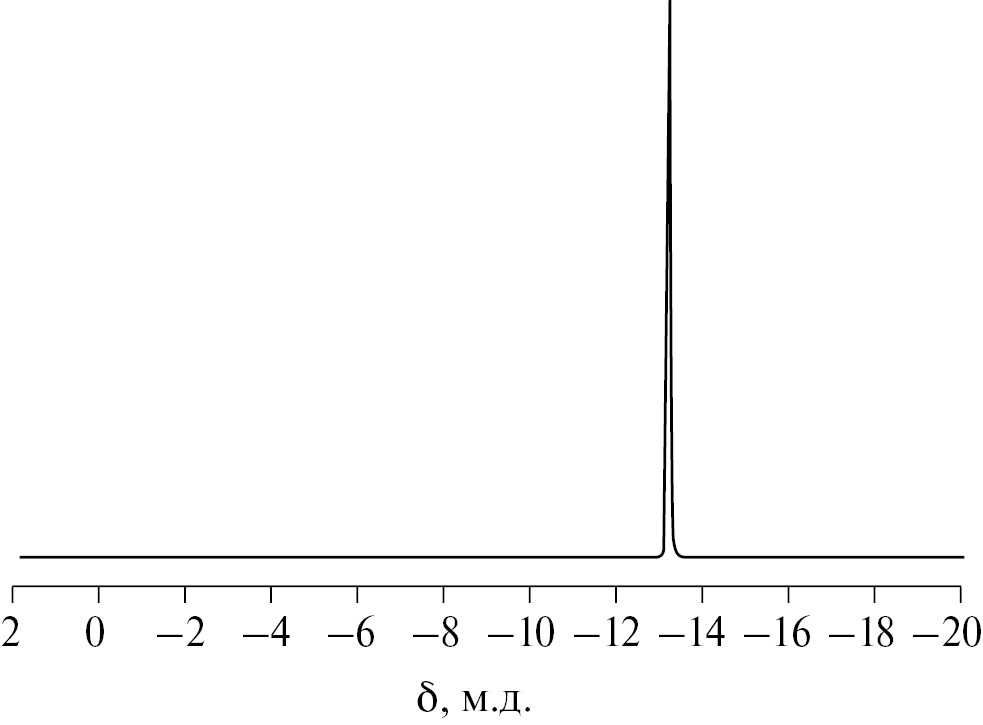 Рис. 2. Спектр ЯМР 31P Li7PW10O36 (H2O/D2O, 400 MГц) в натрий-фосфатном буферном растворе, рН 8, 25°С, химический сдвиг (δ) относительно эталона сравнения – 85%-ной Н3РО4 составляет –13.2 м.д