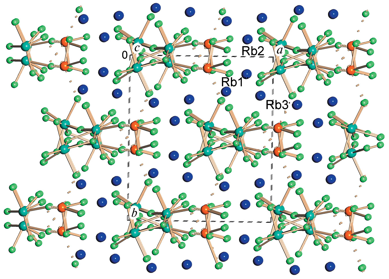 Согласно методу пересекающихся сфер, КЧ атомов рубидия равны: Rb1 – 9 (F9), Rb2 – 10 (F10), Rb3 – 10 (F9O1) (табл. S1).