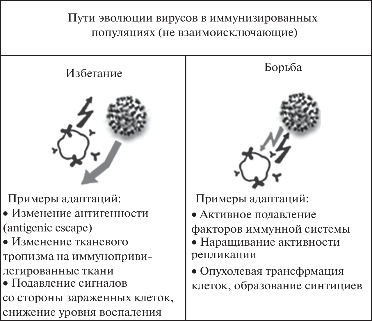 Scientists have described thousands of species of viruses, many of which are pathogens of vertebrates. Given that vertebrates have their highly sophisticated adaptive immune systems capable of memorizing pathogens, interaction with such systems should theoretically be one of the most important factors influencing the evolution of viruses. The review focuses on how acquired immunity (infection-induced and vaccine-induced) affects the most important medical characteristics of viral pathogens – transmissibility, infectivity, and virulence. Both known real examples of the evolution of viruses in immunized populations, as well as theoretical articles and the results of mathematical modeling, are considered. Special attention is paid to the SARS-CoV-2 pandemic. Methodological recommendations are given for creating vaccines and conducting vaccination campaigns in the light of the raised evolutionary issues.