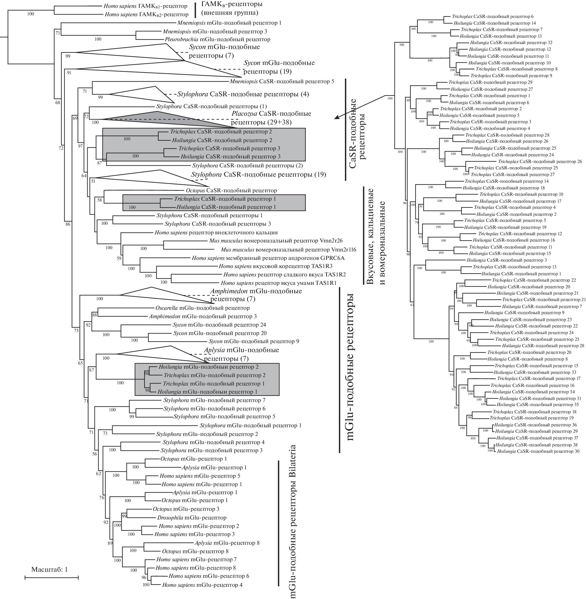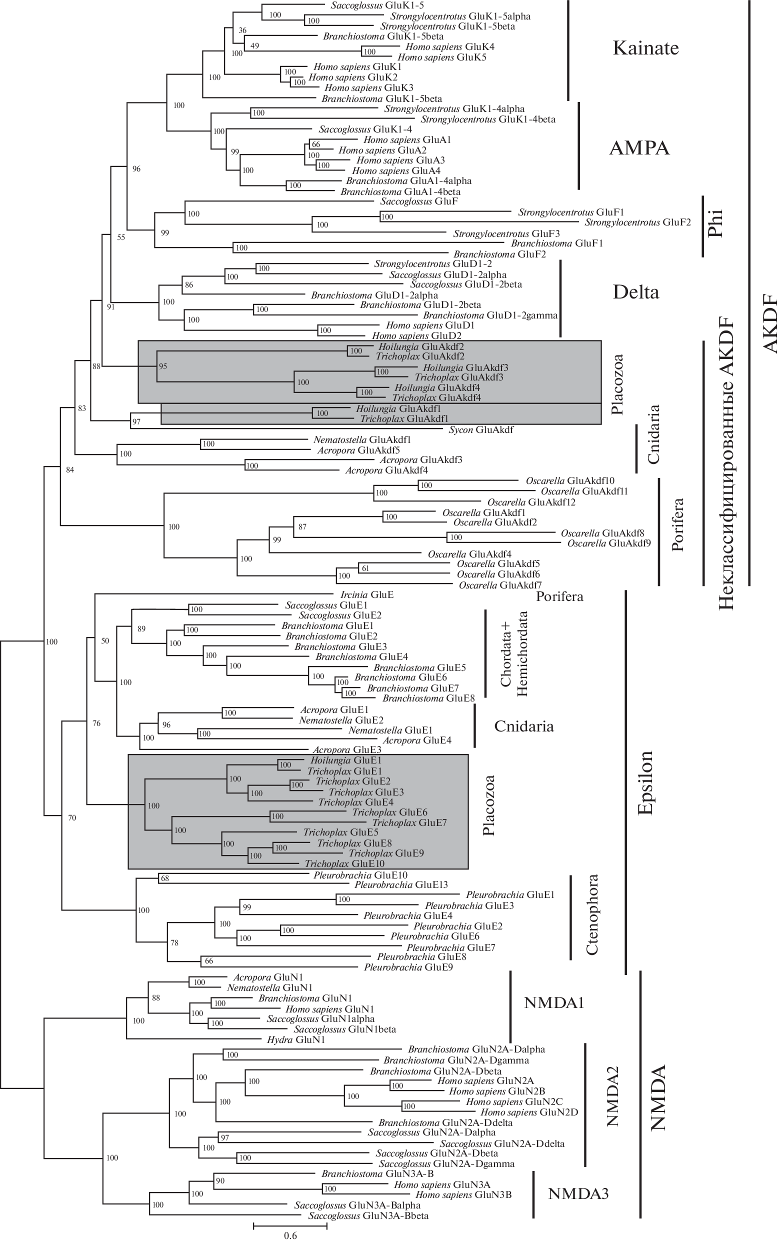 - Ramos-Vicente D., Ji J., Gratacòs-Batlle E., Gou G., Reig-Viader R. et al., 2018. Metazoan evolution of glutamate receptors reveals unreported phylogenetic groups and divergent lineage-specific events // eLife. V. 7. Art. e35774. https://doi.org/10.7554/eLife.35774