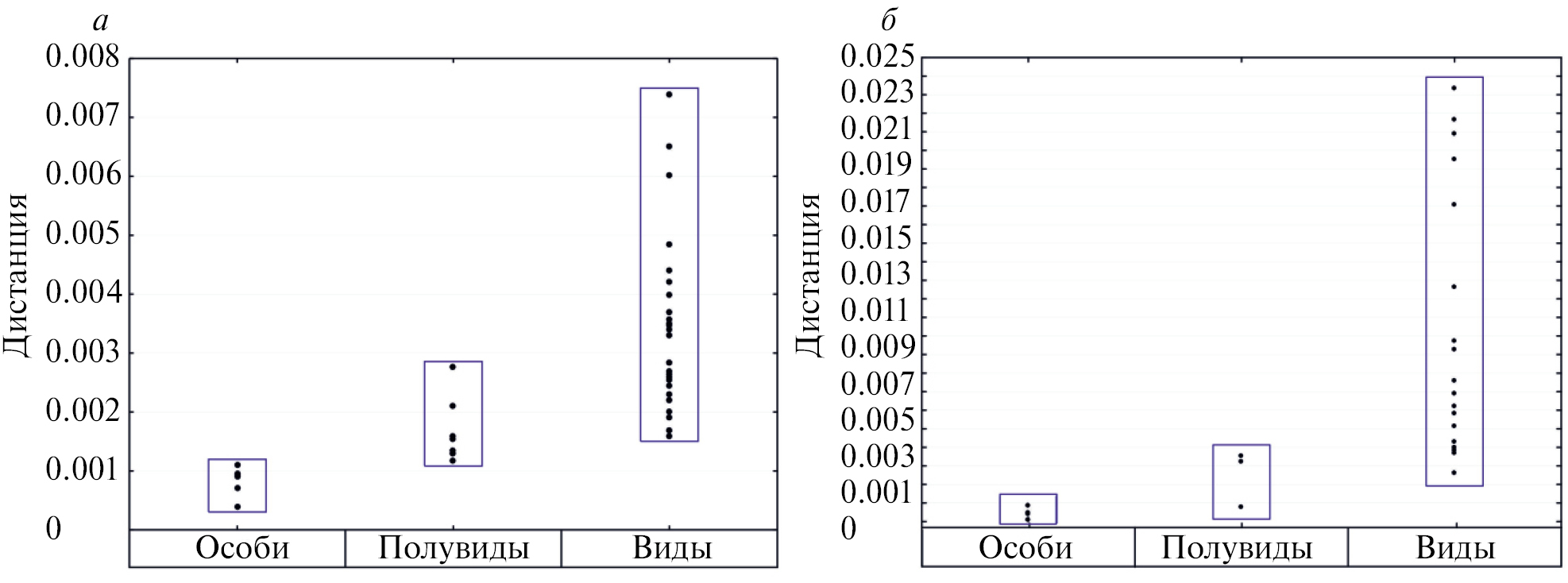 Эмпирические дистанции между близкими видами