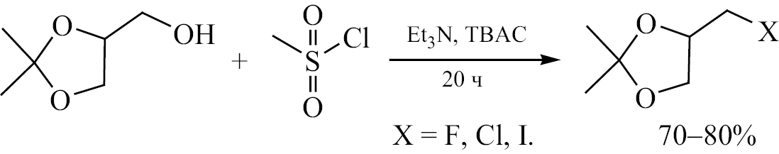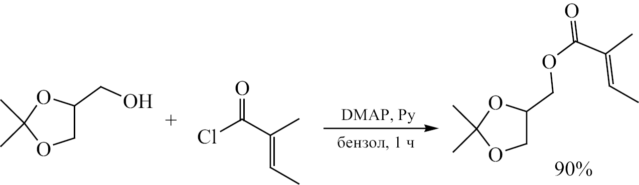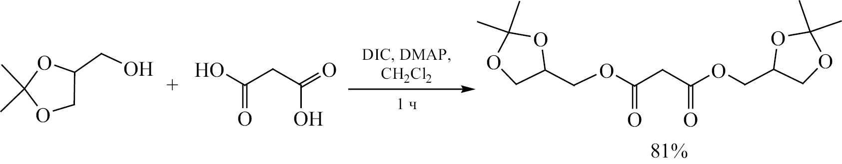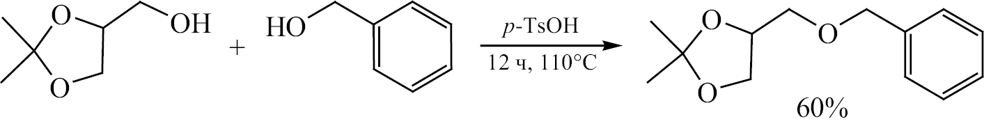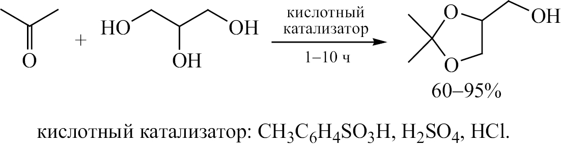 Традиционным способом получения 2,2-диметил-4-оксиметил-1,3-диоксолана является кислотно-катализируемая конденсация глицерина с ацетоном (схема 1) [32–35].