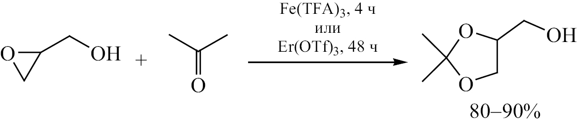 Добавка солей ErIII позволяет селективно и одностадийно добиться количественного выхода 2,2-диметил-4-оксиметил-1,3-диоксолана [49].