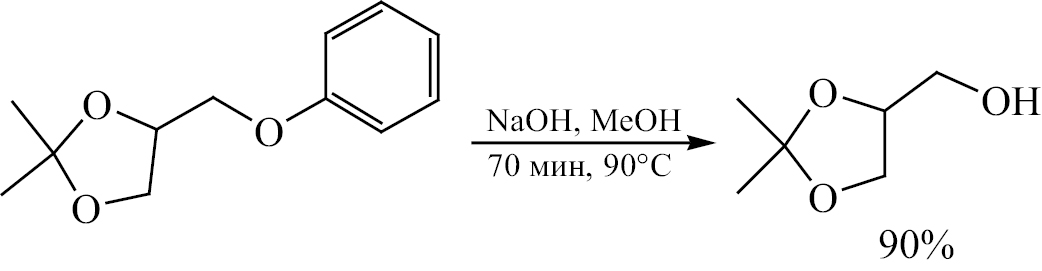 Щелочной гидролиз фенилового эфира в метаноле [62, 63] также используется для синтеза 2,2-диметил-4-оксиметил-1,3-диоксолана (схема 13). Реакция протекает при 90°С в течение 1 ч. Выход 2,2-диметил-4-оксиметил-1,3-диоксолана составляет 90%.