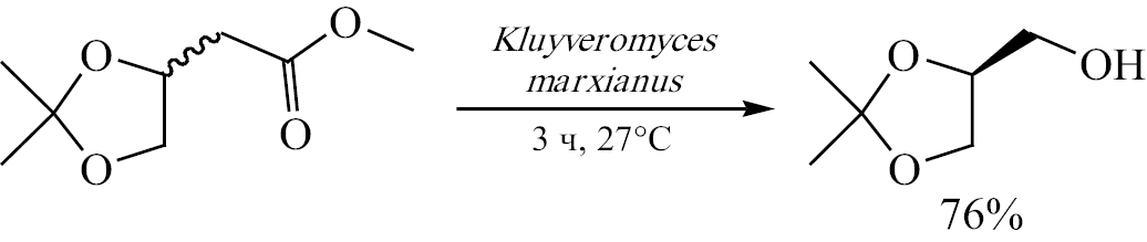 При гидролизе (RS)-изопропилиденглицеринацетата цельными клетками дрожжей Kluyveromyces marxianus образуется R-2,2-диметил-4-оксиметил-1,3-диоксолан (схема 19) [82].
