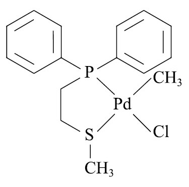 Синтез нейтрального комплекса палладия с (2-метилтиоэтил)дифенилфосфином. Выход 91%.