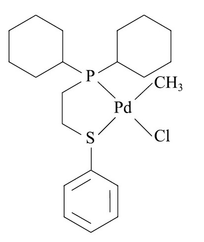 Синтез катионного аллильного комплекса палладия с (2-метилтиоэтил)дициклогексилфосфином. Выход 78%.