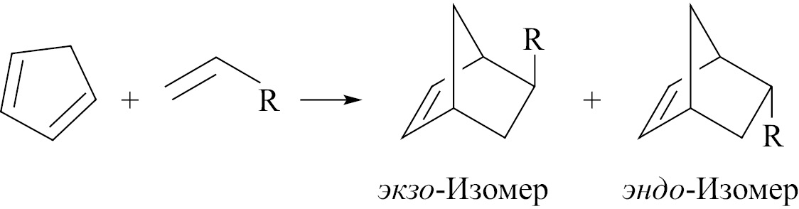 Самым широко используемым методом синтеза производных норборненов является реакция Дильса–Альдера [3]. В ходе реакции происходит сочетание диена (циклопентадиена) с соответствующим диенофильным фрагментом (I). Альтернативным подходом к синтезу замещенных норборненов является модификация норборненов, содержащих подходящую для этого функциональную группу. В литературе представлен способ синтеза производных норборнена, имеющих Si—O—C-фрагменты в боковых заместителях [12]. Данный метод основан на реакции Пирса–Рубинштейна — взаимодействии силанов и спиртов, катализируемом кислотой Льюиса [B(C6F5)3] (II) [13].