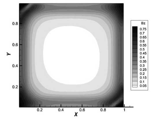 Фиг. 7. Распределение компоненты магнитной индукции Bz на момент времени 0.05 мкс, z = 0.5.