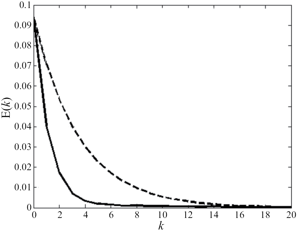 и сравнение скорости сходимости алгоритмов будем проводить по числу шагов, при котором E(k) уменьшится в 10 раз относительно начального значения. Матрицa Q и положительные скаляры R, σ были выбраны, исходя из принципов теории ЛКР: